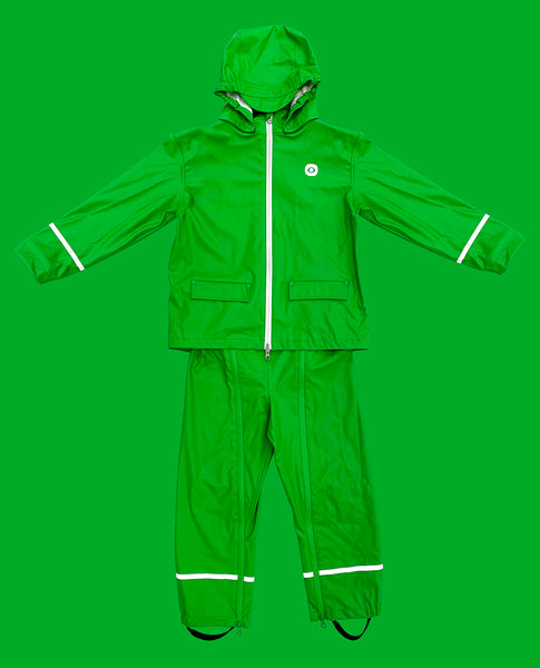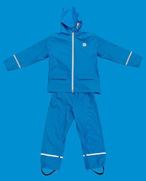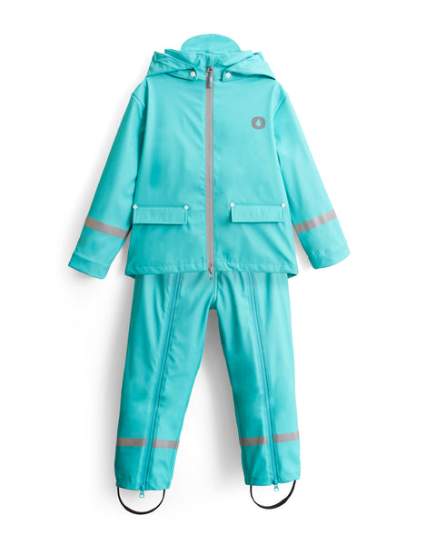 The all-in-one rainsuit can be put on and off without removing footwear.