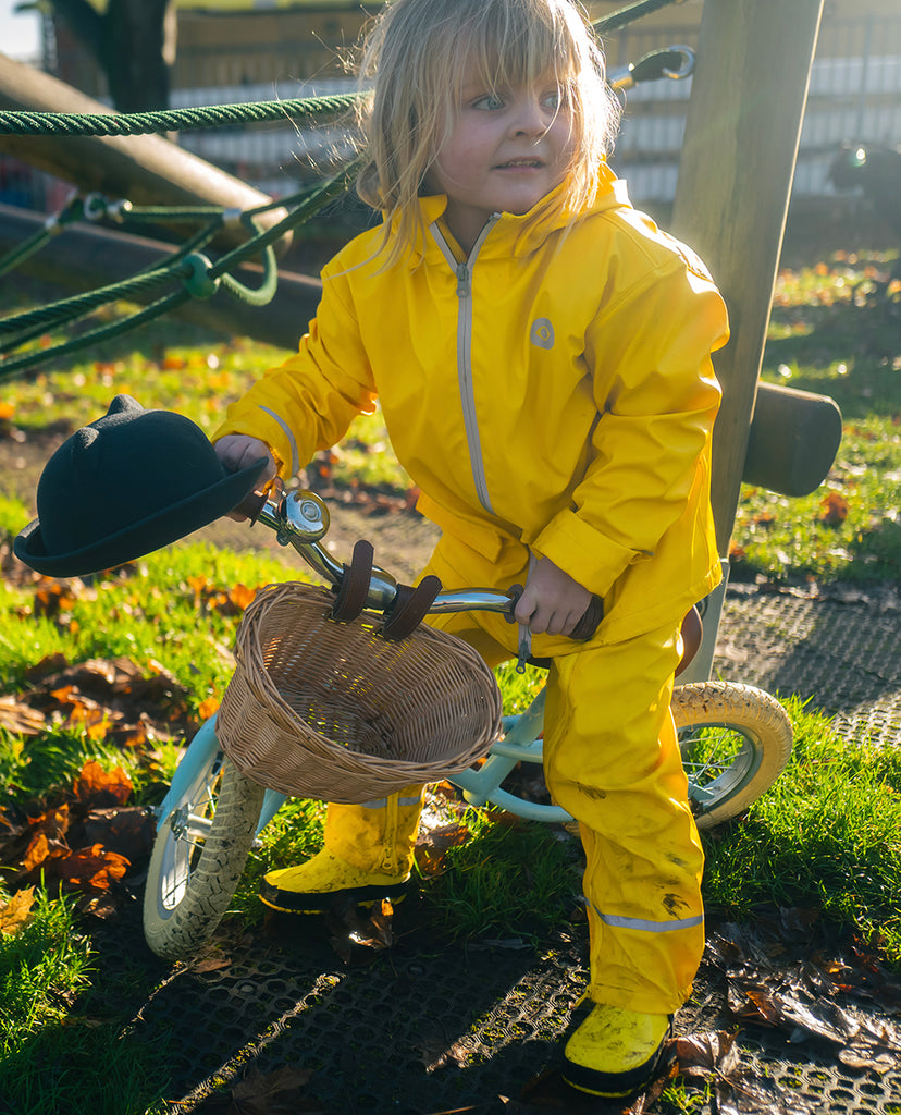 The Leif rainsuit has been ergonomically designed to combine the best features children's rainwear has to offer while adding a few new ideas of our own. The rainsuit zips on and off easily without the need to remove footwear – the first of its kind. It is also adjustable in order to grow with the child allowing it to last longer than the average outerwear. We hope you enjoy discovering all the ways in which you can use your new rainsuit.